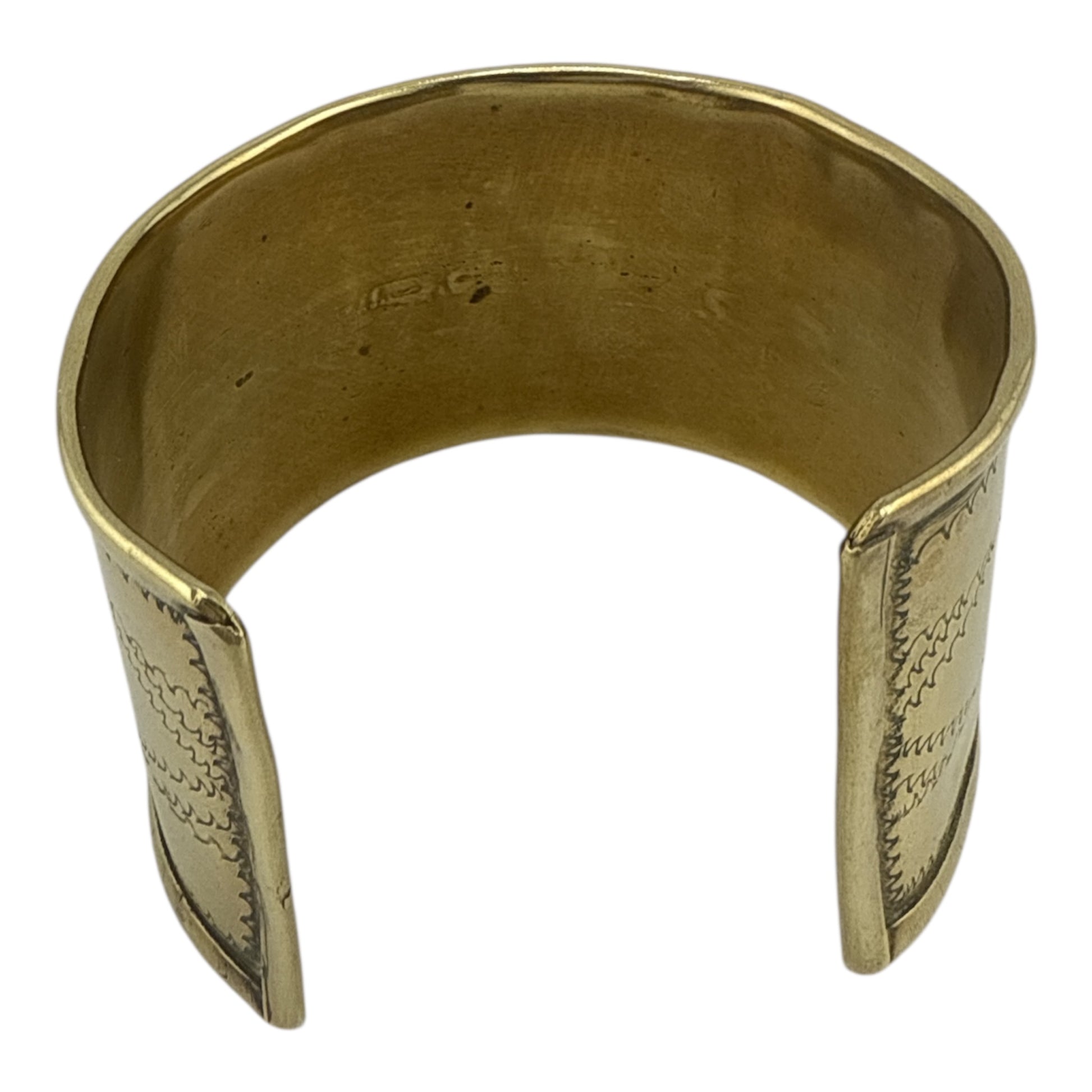 Enhance your style with our African Bronze Cuff Bangle Bracelet featuring etched traditional patterns, this bracelet is a unique addition to any outfit. Showcasing the rich history and culture of Cote D'Ivoire, this bracelet is perfect for everyday wear. Own a piece of African heritage with our African Bronze Cuff Bangle Bracelet.